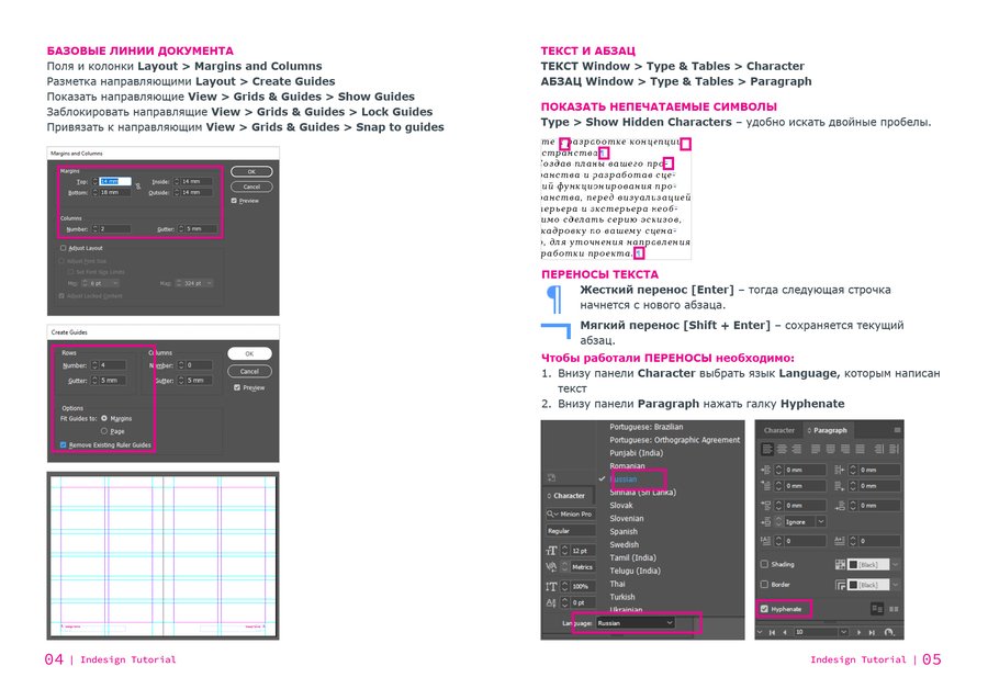 Indesign Tutorial — учебное пособие о том, как создать книгу и как работать в программе для вёрстки Adobe Indesign.