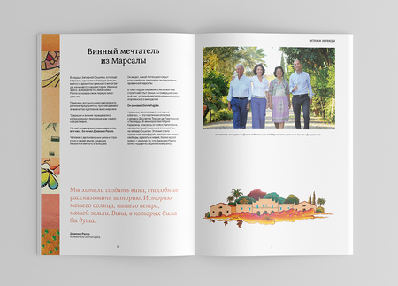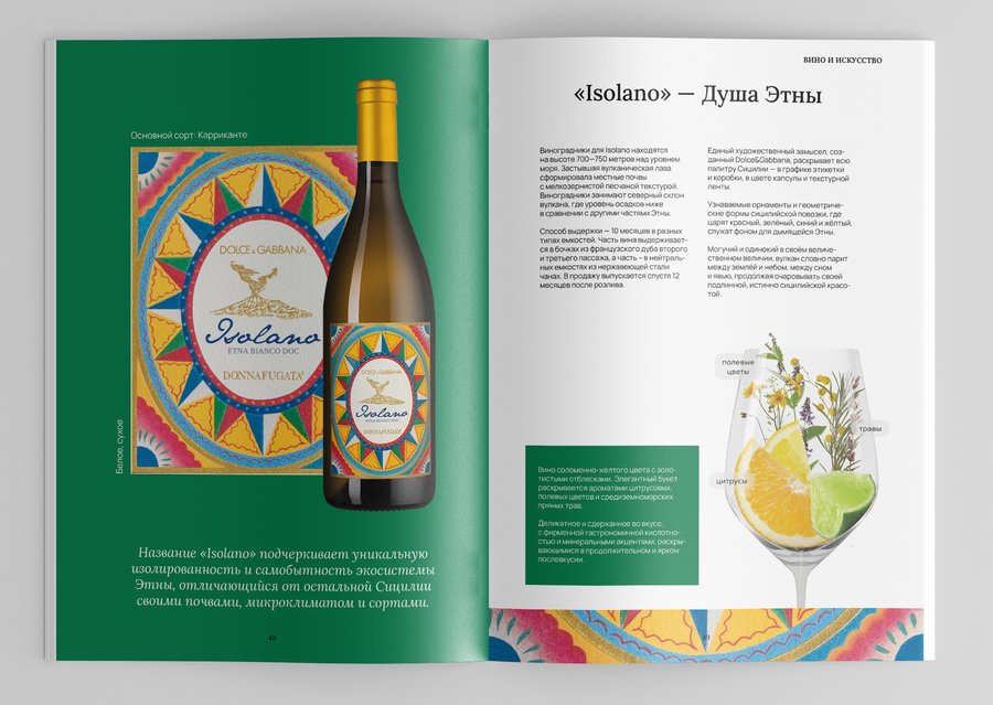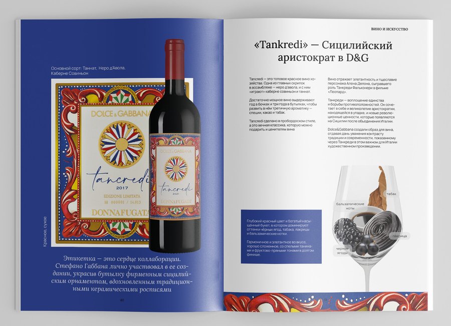 Часть разворотов посвящена сотрудничеству Donnafugata c Dolce & Gabanna.