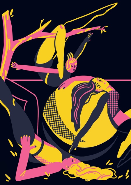 Три, четыре — начинаем упражнение. Делаем все в такт! Серия пастишей, объединяющая в себе спортивные комбинезоны, фитболы, аэробику и даже девушку с жемчужной сережкой.