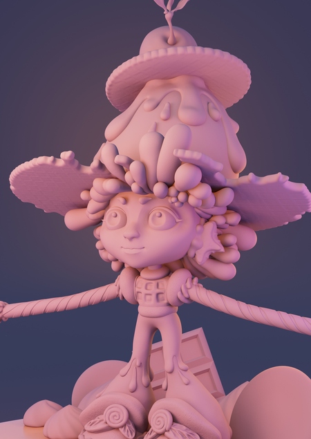 По заранее придуманному концепту была создана трёхмерная модель персонажа.