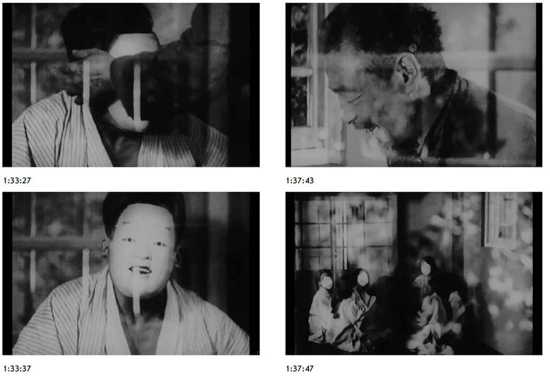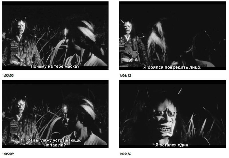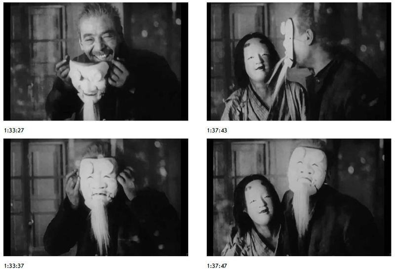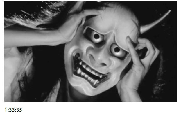Маска самурая идентична маске хання японского театра но. В анфас она выглядит как злой оскал, но при наклоне головы выражение лица сменяется на рыдающее. Персонаж этой маски — душа женщины, которая превратилась в демона из-за негативных эмоций: ревности или одержимости, зависти. В конце фильма женщина кричит: