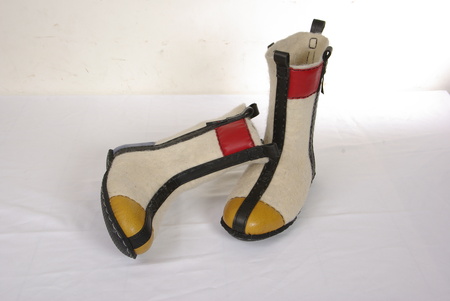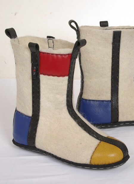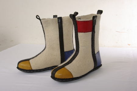 Валенки остаются незаменимой обувью для отдыха зимой. Имея глубокие этнические корни, валенки могут стать равновесным элементом современного костюмного комплекса. Выполненные в стиле Пита Мондриана, валенки могут быть приняты и европейским потребителем
