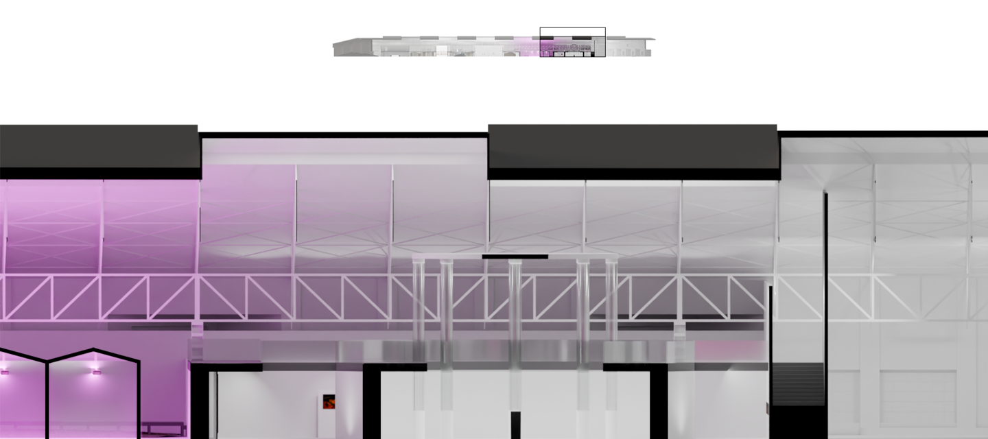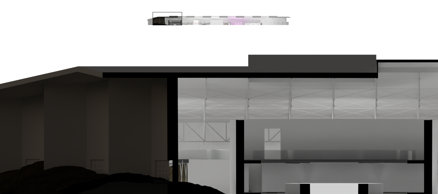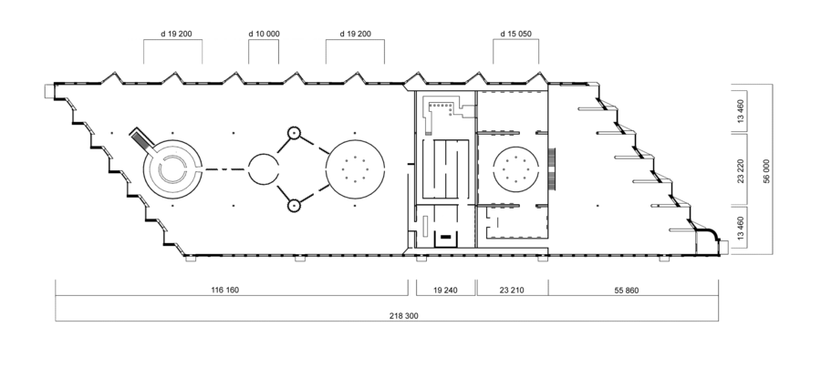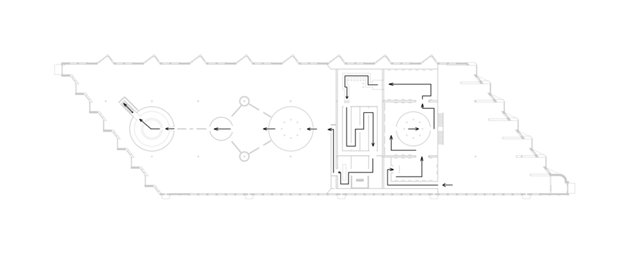 контраст объемов лежит в основе планировочного решения. упомянутая ранее первая часть выставки выполнена чередой относительно замкнутых пространств, которые «сдавливают» зрителя и отсылают к лабораторной структуре.