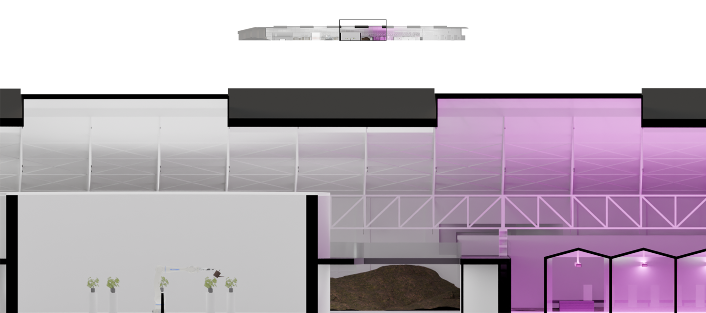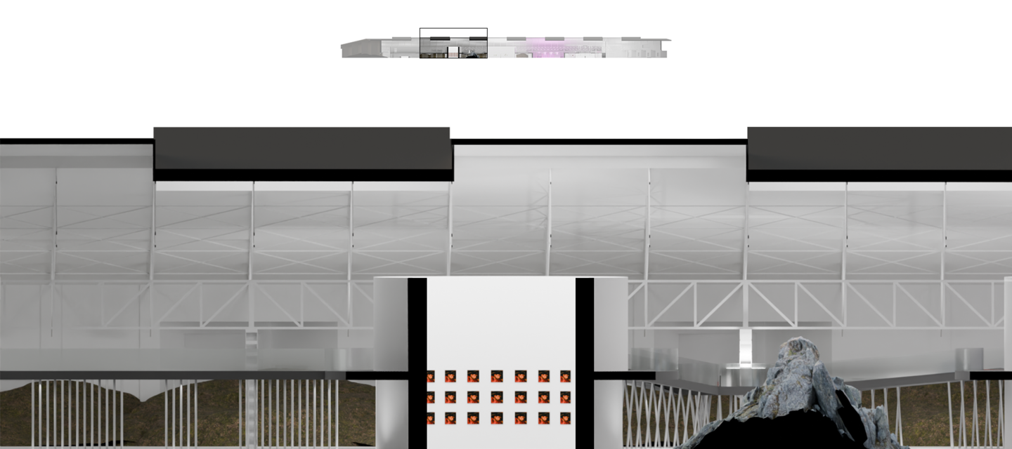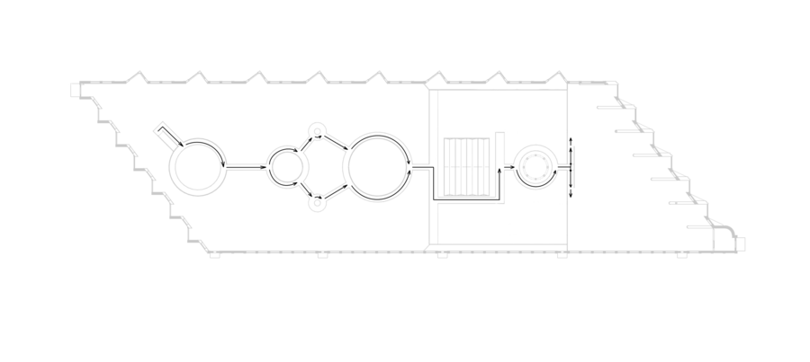 однако, пройдя первичный лабиринт, зритель попадает во вторую часть — необъятное, кажущееся диким и самобытным пространство, тот самый райский сад. характерная радикальная смена объемов подчеркивает уязвимость человека перед технологиями и прогрессом в целом.