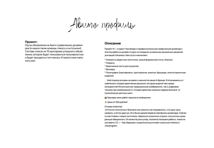 Планирую развивать Авито услуги и продвигать их с помощью покупок показов внутри самого приложения, а также пробовать новые гипотезы в рекламе Вк и перенаправлять аудиторию от туда в Авито