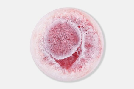 Promt: based on a picture, generate a macro shot of a Petri dish with transparent gel and abstract organic structures inside, soft pink and pearlescent white shades, translucency and fluidity effect, biodesign, a blend of scientific aesthetics and art, realistic lighting, minimalist background, a sense of softness and ephemerality, inspired by biotechnology and contemporary bioart