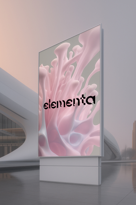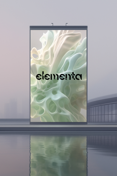 prompt: Logo with the word «elementa, ” minimalist geometric font with soft curves and large letters, inspired by Swiss modernism and the „form fluid“ poster. White background, black text, balance between a strict grid and smooth organic lines. Clean design, emphasis on letterforms, neat spacing between letters, stylish composition, modern graphics, art direction on par with Bauhaus and Swiss design, vector quality, high resolution. add caption chemical elements laboratory
