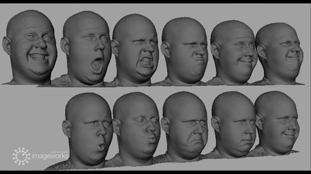 Для анимации было создано около 3000 шейпов лица (face shapes) цифрового двойника — моделей лица с различными выражениями мимики. Также были настроены специальные шейдеры, позволяющие аниматорам в реальном времени наблюдать движение морщин на лице ещё до финального рендера. Это дало возможность более точно подбирать ключевые позы для диалогов и других мимических движений.