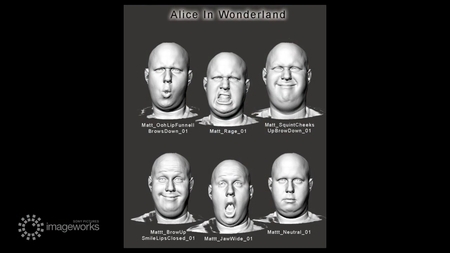 Ручной перенос эмоций на CG-персонажа. Сканы актера используются как референс // «Алиса в Стране Чудес» (2010). // VFX-супервайзер: Кен Ралстон