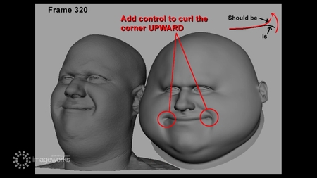 «После того, как актёры завершили съёмки, а монтажная группа выбрала нужные дубли, мы проанализировали отснятый материал, используя данные с камер, направленных на лицо. Мы произвели трекинг всех маркеров на лице актёров и создавали анимированное 3D-облако точек, точно передающее мимику. Затем, с помощью нашей собственной системы лицевой анимации <…> это облако точек переносилось на риги персонажей. В результате мы получали анимацию лица персонажа, максимально близкую к игре актёра. Хотя это был не финальный вариант, он служил отличной основой для дальнейшей доработки аниматорами.» [5]