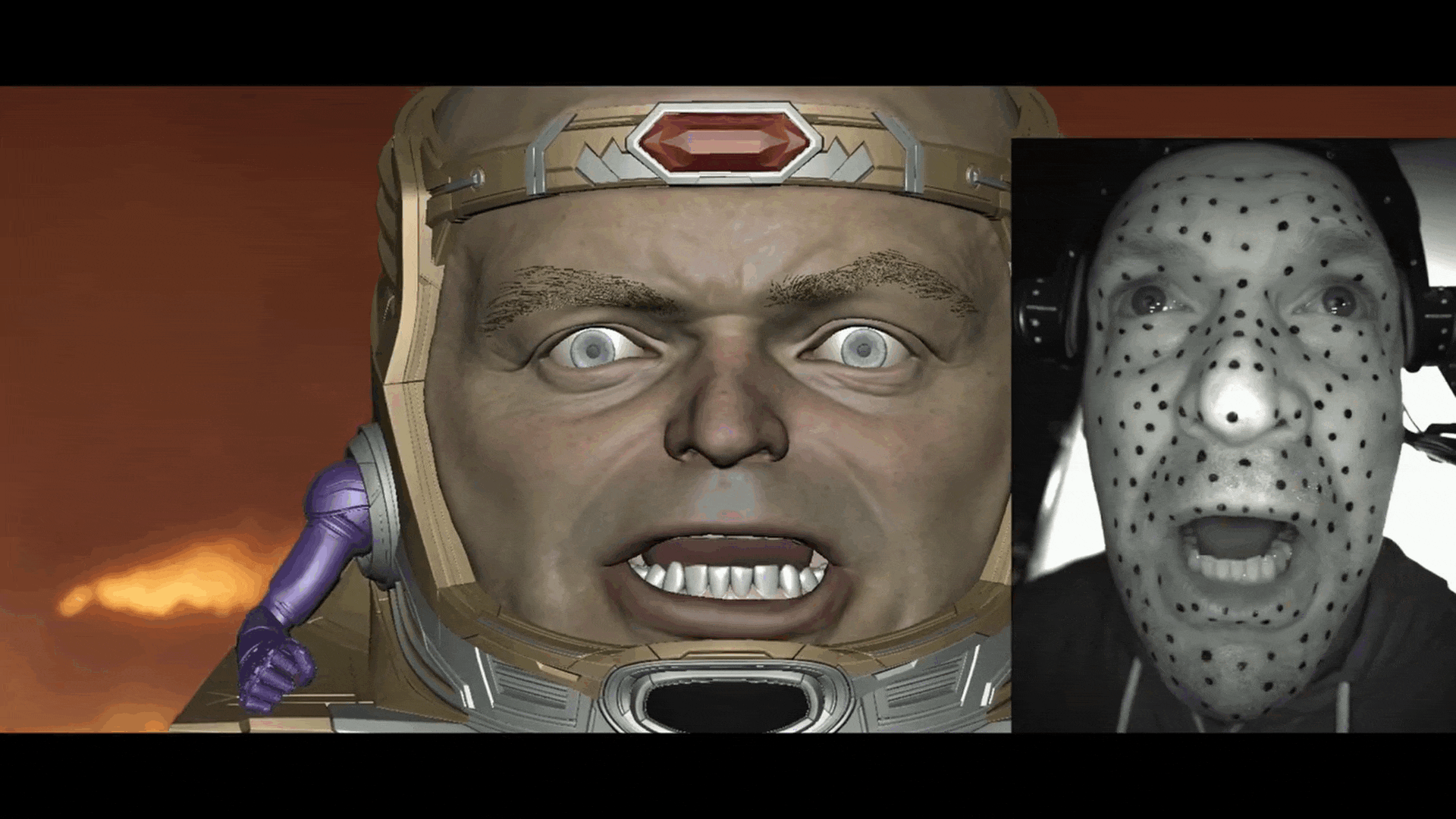 «Используя Masquerade, мы всегда разрабатываем диапазон движений для нашего машинного обучения, который будет соответствовать большинству требований к мимике. Это отлично сработало в случае с ассетом лица Кори (Столла), но его необходимо было максимально точно передать в лице персонажа M.O.D.O.K. Глаза, нос и рот полностью соответствуют изображению Кори, но из-за изменения пропорций нам пришлось разработать систему отображения масштабов, чтобы учесть разницу в пропорциях между этими двумя лицами. Только после этого мы смогли по-настоящему изучить мимику и все взаимосвязи на лице (персонажа). Например, расположение губ по отношению к зубам и деснам и радужной оболочки по отношению к векам. Все это может показаться излишним, но, если не обращать внимания на такие мелочи, может возникнуть ощущение неестественной мимики.»[8]