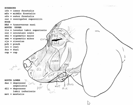 анатомические наброски мышц для риггинга морды собаки Крошка из Беверли-Хиллз (2008)