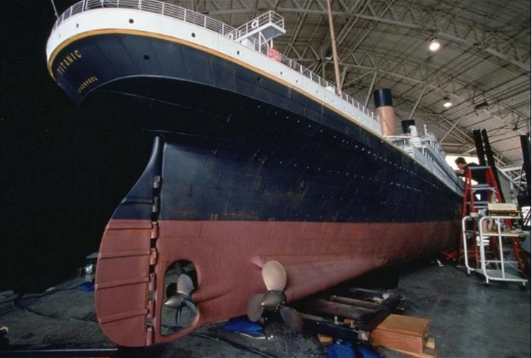 Для съемок создали несколько масштабных макетов судна, а также почти полноразмерную копию палубы. Модель корабля в пропорции 1:8 — воспроизводила лишь половину судна (от центральной части до кормы). И специально конструировалась так, чтобы ее можно было многократно затапливать. Всего для фильма создали четыре модели корабля, самая компактная из которых имела длину около 7 м.