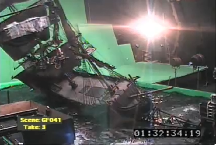 Сцена разрушения Титаника. Закадровая съемка и финальный результат.