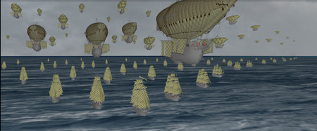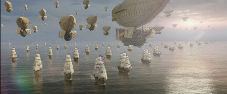 Особую сложность для команды представляла визуализация дирижаблей, которые по сюжету были созданы по чертежам Леонардо да Винчи. Разработка проекта дирижабля велась на основе трёх источников: сначала художественный отдел подготовил концепции, затем на их базе изготовили масштабные макеты. Параллельно для съёмок сцен на корабле возвели фрагмент палубы, а анимацию и крупные планы выполнили с помощью компьютерной графики. Большинство дирижаблей, особенно в сценах воздушных сражений, были созданы также с помощью компьютерной графики.