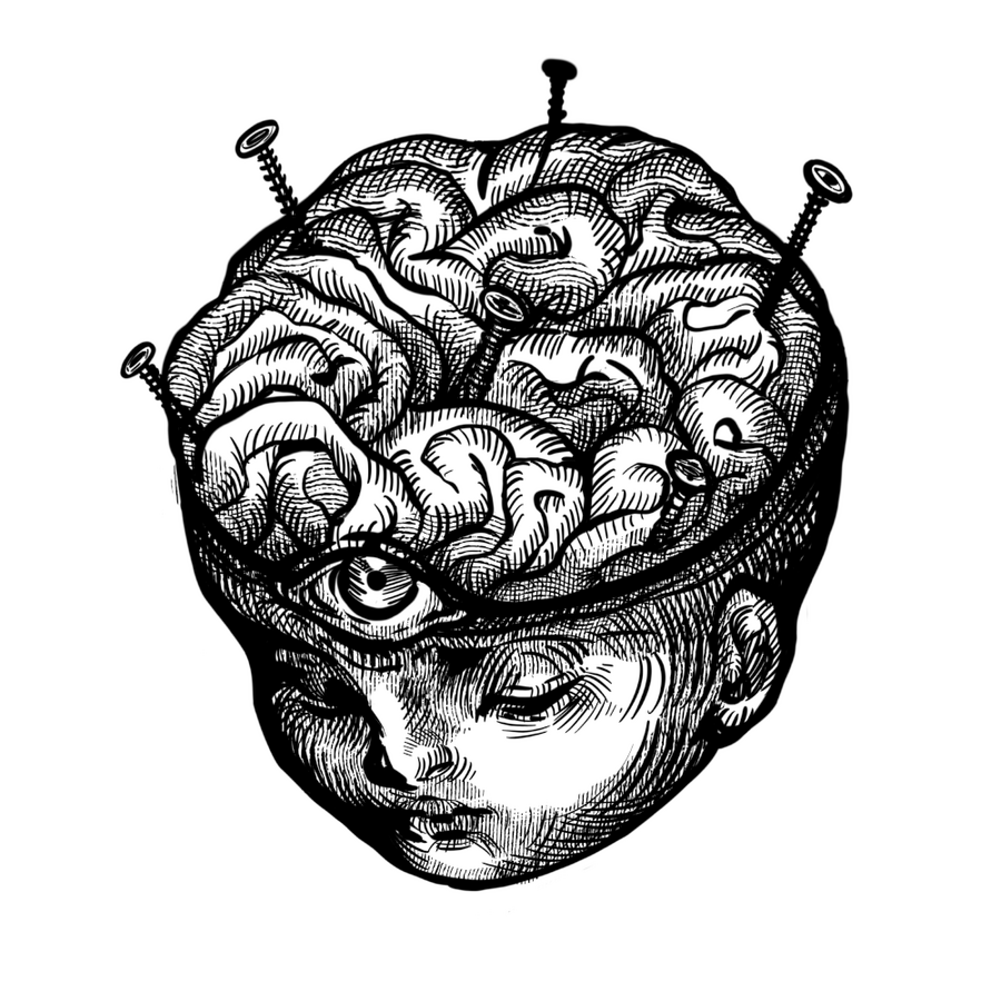 В каждом атрибуте чувствуется что-то знакомое (тело, сердце), но всегда есть и отталкивающие детали, такие как кровь, оголенные мышцы и мозг.