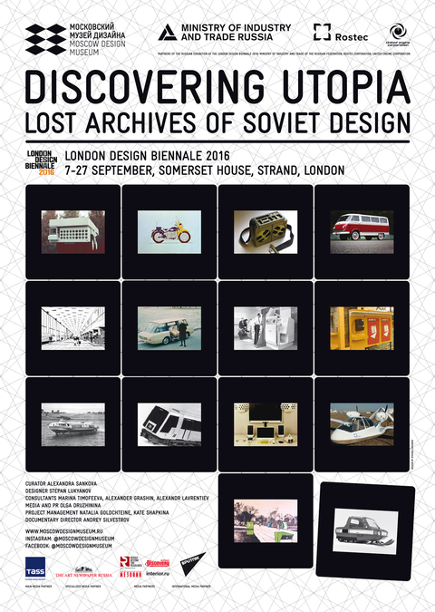 Выставка Московского музея дизайна «Открывая Утопию: забытые архивы советских дизайнеров», созданная в рамках Лондонской Биеннале Дизайна, знакомит посетителей Биеннале с неизвестными страницами советского дизайна. В СССР существовала уникальная система дизайна, центром которой был Всесоюзный научно-исследовательский институт технической эстетики (ВНИИТЭ). В начале 1960-х руководство СССР стало уделять внимание развитию дизайна. В 1962 был основан ВНИИТЭ во главе с Юрием Соловьевым. В экспозиции, созданной по принципу системы хранения информационных материалов в советских научно-исследовательских институтах, впервые показаны уникальные архивы художников-конструкторов ВНИИТЭ 1960−1980 годов из собрания Московского музея дизайна. Экспозиция представляет собой инсталляцию: лайтбоксы с оцифрованными изображениями со слайдов − реализованные и нереализованные проекты дизайнеров, кадры с выставок и конференций, проводимых ВНИИТЭ, рабочие моменты. Экспозиция получила главный приз Лондонской Биеннале Дизайна.