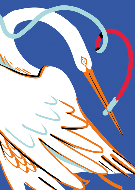 Большая белая цапля. Танцует с ленточкой