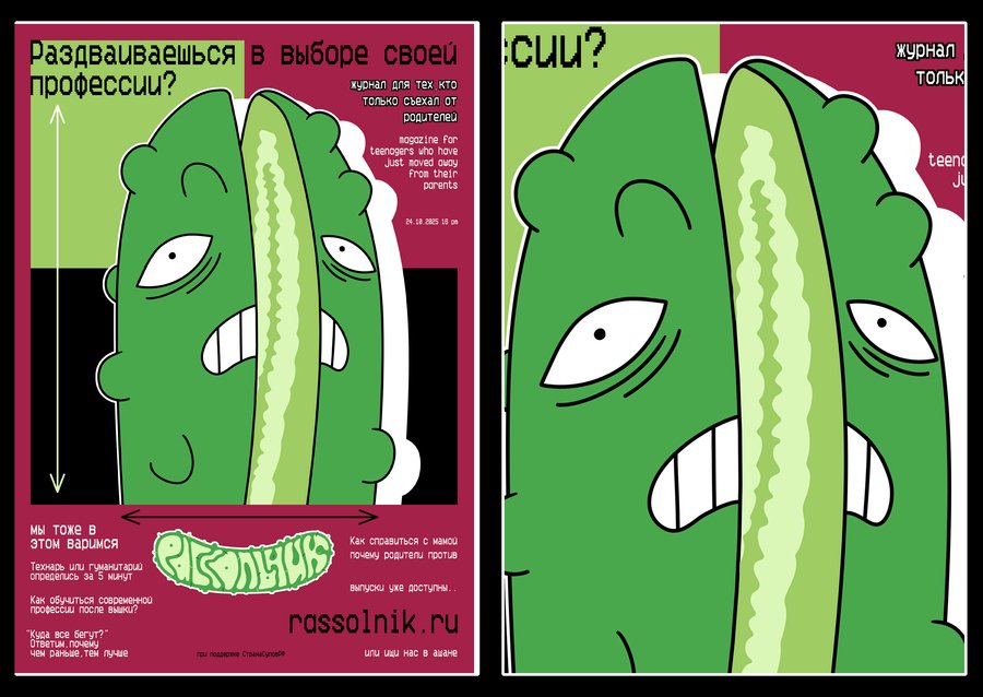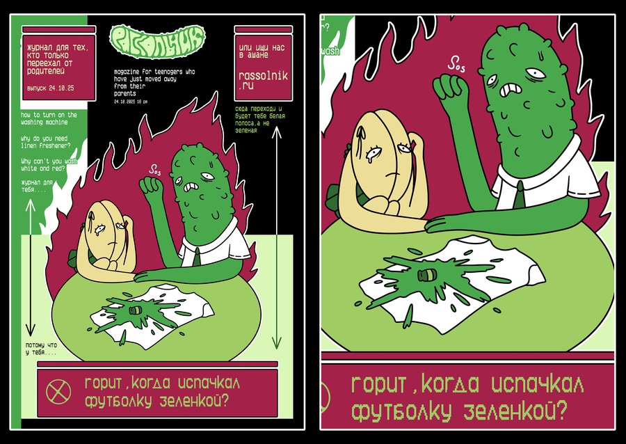 Рассольник — это журнал для подростков, которые только съехали от родителей и не знают некоторые нюансы взрослой жизни. Как оплачивать счета, зачем нужен риелтор и почему выключают воду осенью — все это мы расскажем в рамках канонов «айпад кидс» и «поколение быстрой утери внимания».