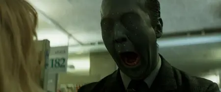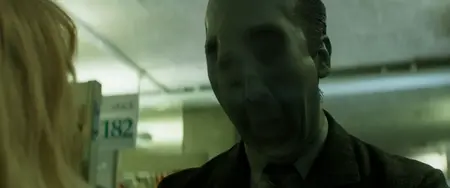 На самом деле поверх одного из призраков можно увидеть лицевые элементы других призрако-актеров. И когда они приходят к героине в первый раз, одно и то же лицо переходит с одного призрака на другого. И это было не просто размытие черт и их частичное «восстановление», эти частичные изображения прыгали и дергались, будто их бьет током. И это была довольно сложная сцена, потому что в комнате моргал свет. Разные актеры проделывали одни и те же движения на камеру, и эти движения нужно было синхронизировать со вспышками света, чтобы в финальном размыто-дерганном образе все совпало.