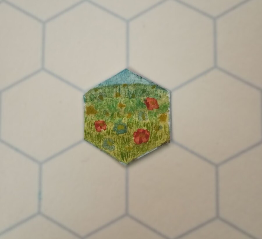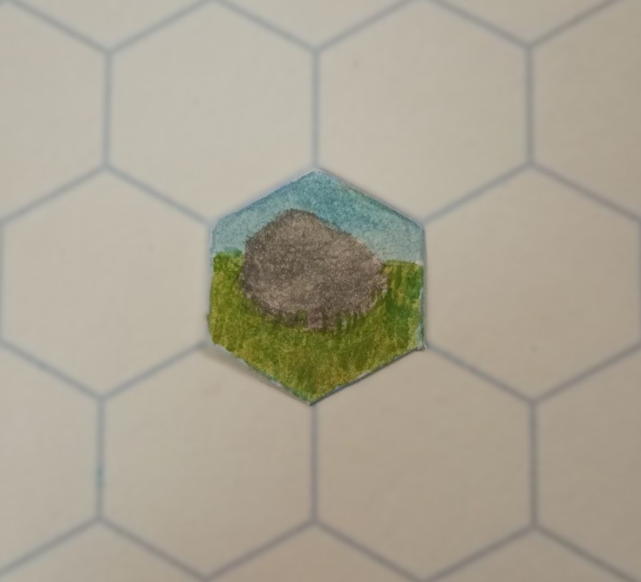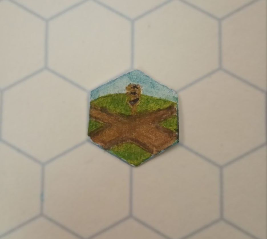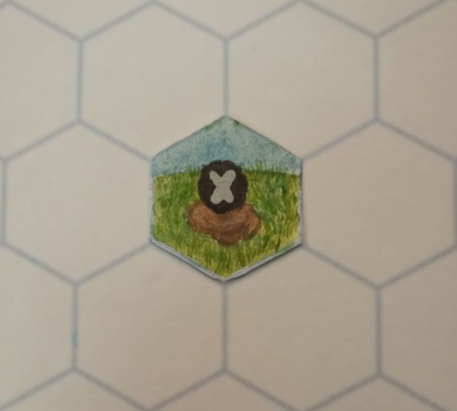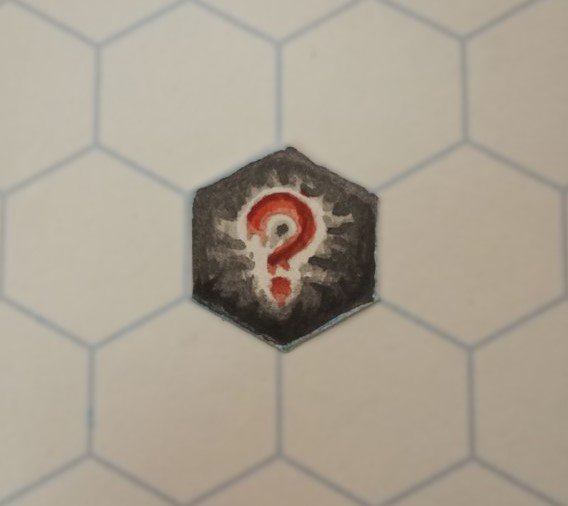 Карта генерируется случайно, состоит из шестиугольных тайлов (в диаметре карта ≈ 9 тайлов). Тип тайлов определяется броском к6, начиная с центра, затем левой и далее по часовой: