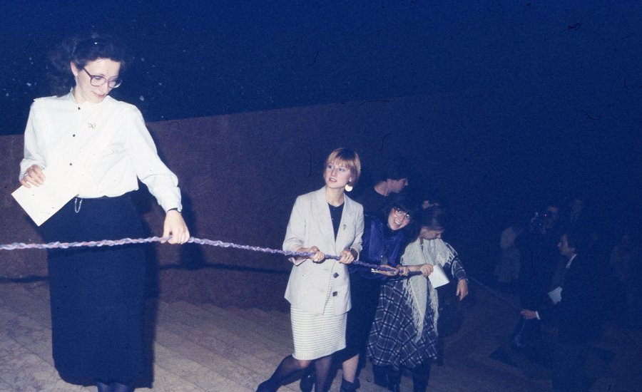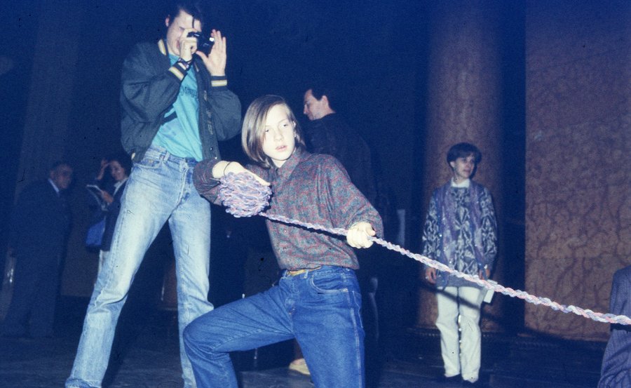 Акция «Мемориальный шнур Генри Мура». Группа «Му-зей». 1991. Место проведения — залы ГМИИ им. А. С. Пушкина.