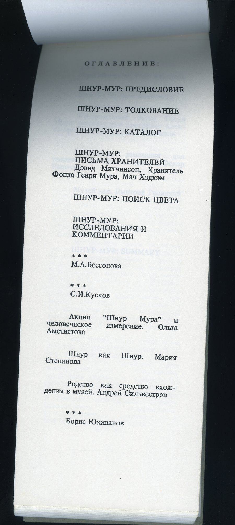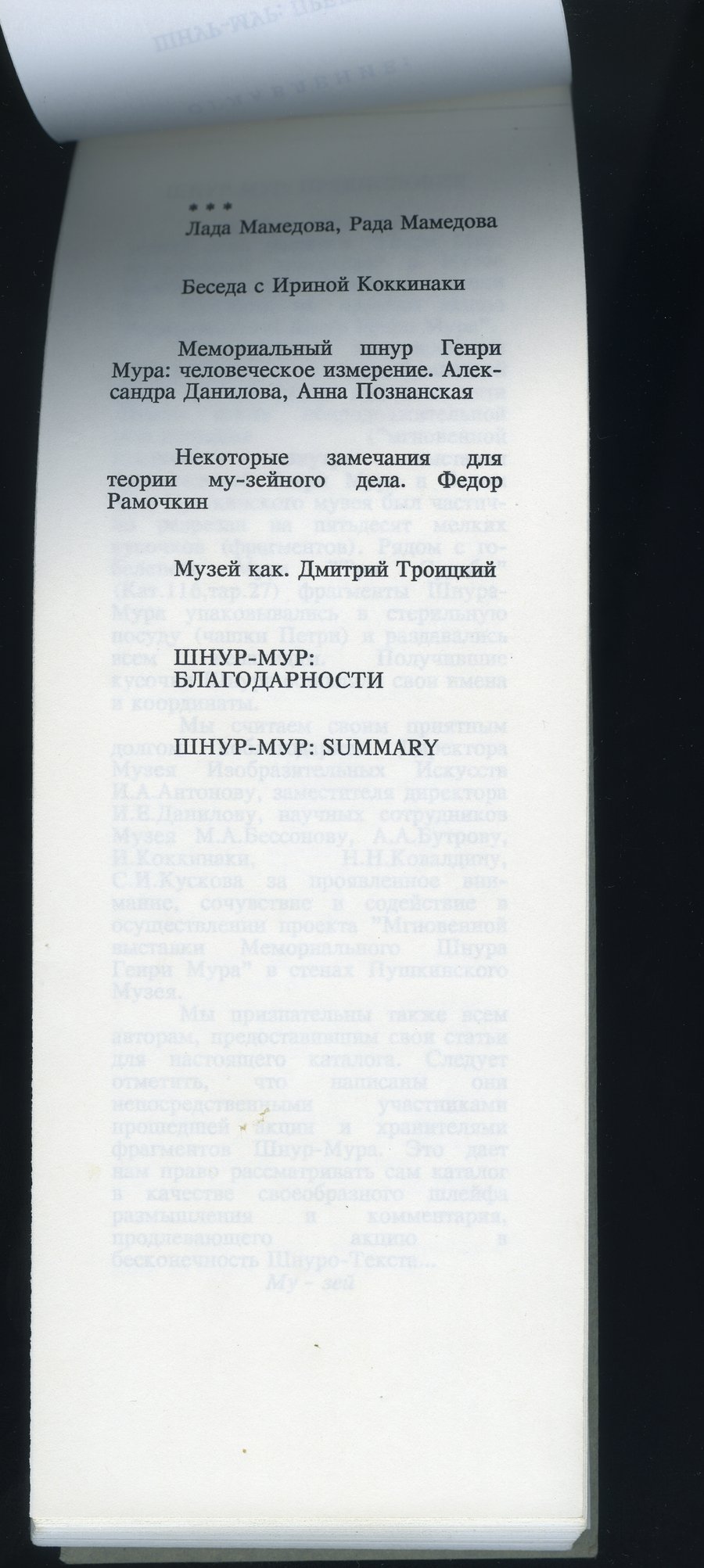 Каталог акции «Мемориальный шнур Генри Мура». Группа «Му-зей». 1991. Ксерография, тиснение, ручной переплет.