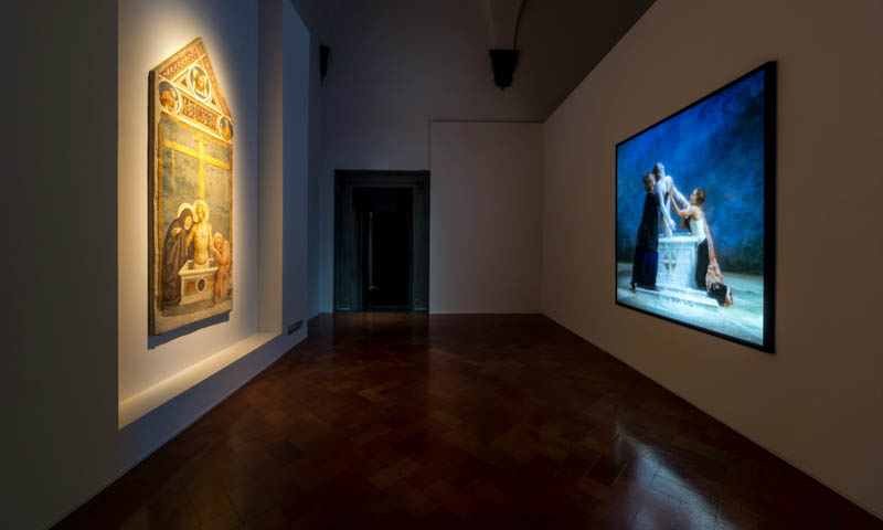 Часто проводится аналогия между фресками эпохи Возрождения и работами художника — в таком экспонировании их тоже сравнивают: как религиозная живопись того времени создавала самостоятельное пространство, как бы существующее в собственном смысловом и физическом поле, так и в случае с этой инсталляцией выходит то же самое.