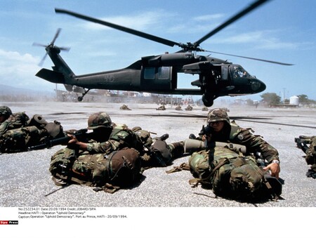 Операция, которую иллюстрирует данная фотография Алекса Уэбба, называлась «Uphold Democracy» («Поддержать демократию»). Она длилась с 19 сентября 1994 года по 31 марта 1995 года. Это была военная интервенция США на Гаити при поддержке администрации президента Клинтона.