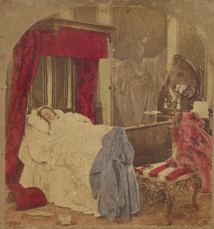 Популярность таких изображений резко возросла благодаря изобретению стереоскопа — устройства, создающего объемный 3D-эффект. Компании вроде London Stereoscopic Co. к 1856 году уже предлагали более 100 000 карточек, включая и множество сюжетов с «призраками». Интересно, что многие из этих изображений были многослойными визуальными шутками, отсылающими к популярной литературе и театральным постановкам. Например, карточка «Сон после просмотра Призрака Пеппера» (ок. 1865) сочетала отсылку к новой театральной технологии (так называемому «Призраку Пеппера», оптическому эффекту, позволяющему создавать впечатление материализации объектов, людей или любых существ на сцене), кулинарным метафорам и даже к «Рождественской песне» Диккенса, где Скрудж объясняет видение призрака Марли «плохо переваренным куском говядины».