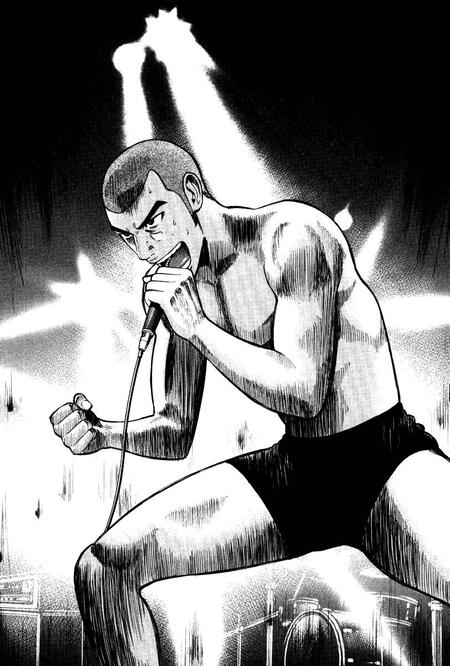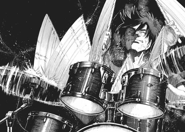 Многослойные штрихи, размытия, повторяющиеся контуры и длинные линии движения создают ощущение вибрации и скорости, благодаря чему читатель буквально «видит» темп исполнения. В некоторых сценах динамика достигается за счёт мощных диагоналей композиции, резких контрастов и взрывных вспышек ударов. Благодаря этому строка комикса превращается в импульс, который передаёт живое выступление.