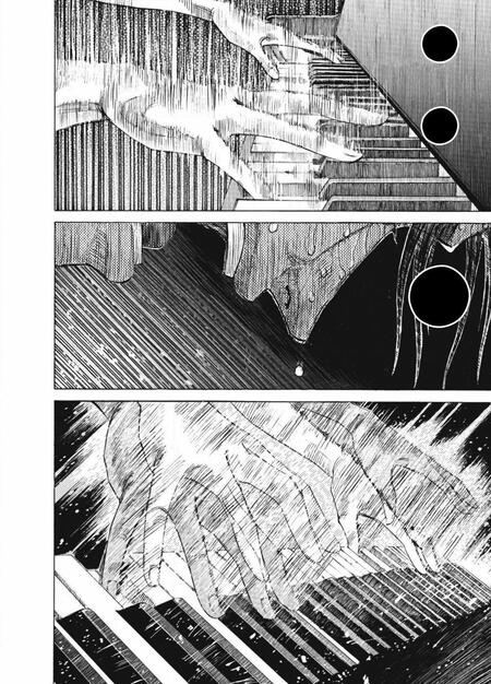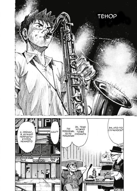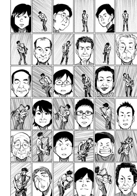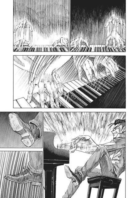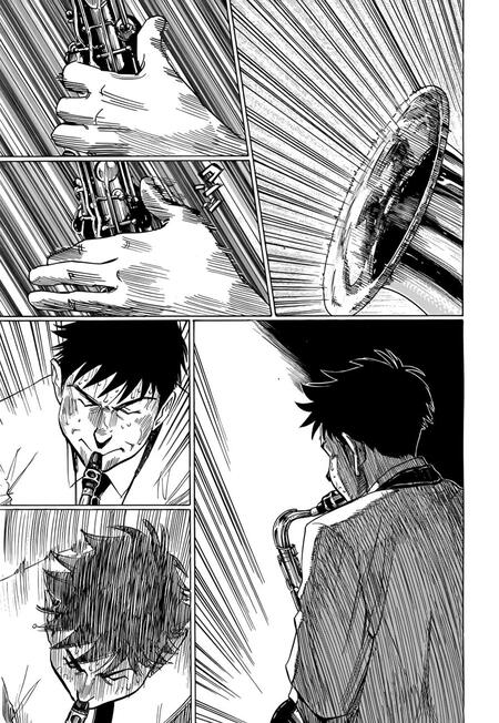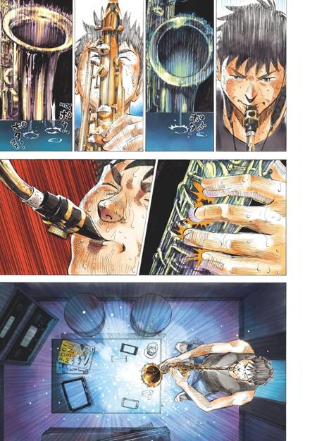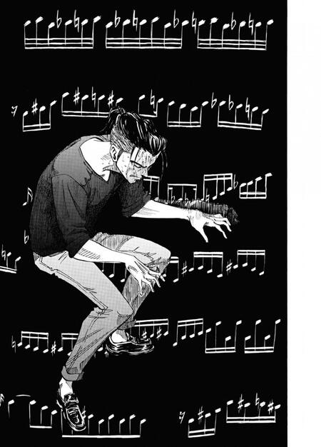 На данных страницах можно буквально прочитать нотный лист и повторить за героем его игру; «Синий гигант» (2013 — 2016)