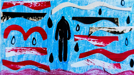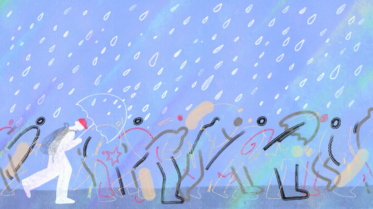 The hero is standing on the cliff. There’s an ocean on the front, and there’s a hurricane on the back.