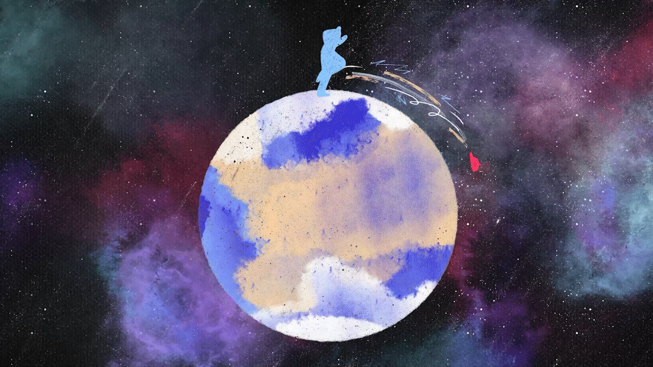 In the center of the video’s story, a hero who’s being ripped out of his day-to-day life by a magic hurricane and taken away in adventures across the universe.