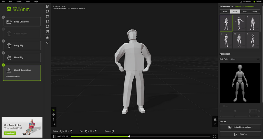 Я подробно разобрал риггинг гуманоидных персонажей с помощью Accurig и их последующую анимацию в Cascadeur.