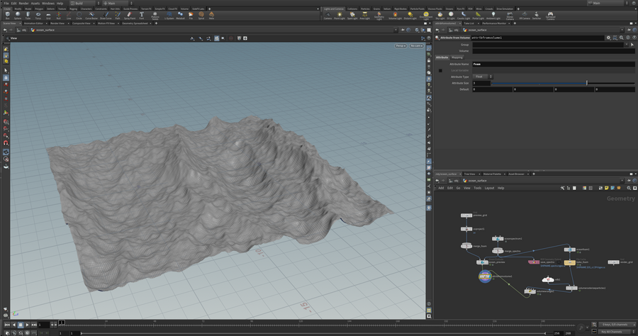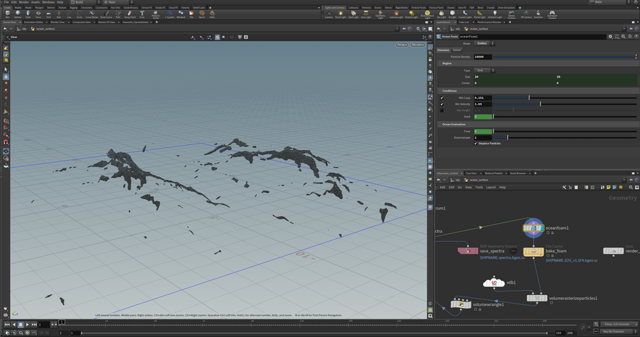 Волны океана симулировались в Houdini. Также была создана анимированная текстура пены на поверхности океана, но из-за большой нагрузки и преимущественно темного освещения от нее было решено отказаться