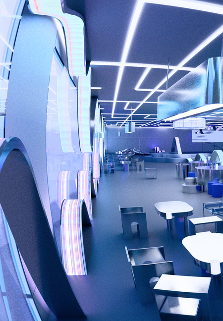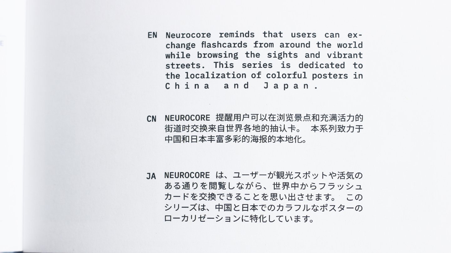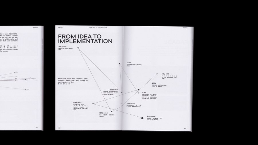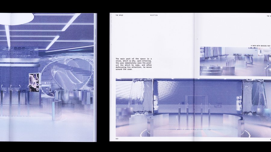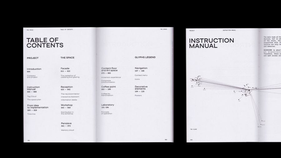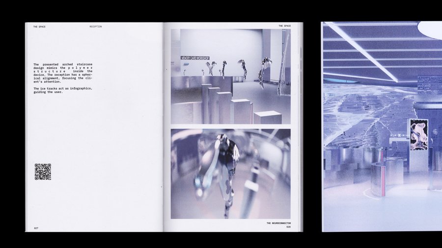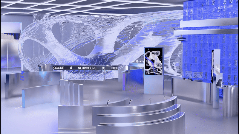 Основная задача пространства — продажа нейроконнекторов NEUROCORE, но помимо основной концепции стора, посетителю предлагается ознакомиться с философией компании и получить не только продукт, но и эмоции и воспоминания.