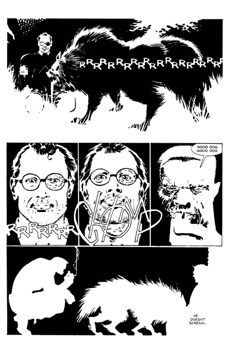 Игра с негативным пространством очень напоминает стиль Фрэнка Миллера в его комиксе Город Грехов, вышедшего на 6 лет раньше и тоже наполненного грубостью, «квадратностью» и кровью. Возможно, это и было основным вдохновением для Гордона Ренни, и его можно понять, ведь атмосферы у этих работ довольно схожи.