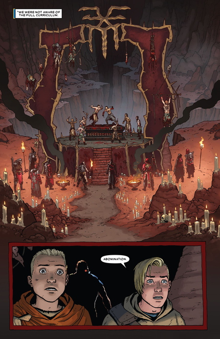 Will of Iron творчества Джорджа Манна рассказывает историю не битвы, а некого детектива. Главная героиня Астор — агент Инквизиции отправляется на поиски предателей Императора Человечества. История, полная тайн и интриг внутри системы, удостоена нескольких выпусков и опять дает нам взглянуть на мир от другого сословия. Хорошая и симпатичная работа и пером и цветом, но с этого момента видно, что производство ушло на поток. Отсутствие визуального эксперимента и следование общим трендам комиксов сделало картинку просто обычной. Хоть вселенная Warhammer не в каждом уголке должна быть грязной темной и неприятной взгляду, в ней есть место всему спектру цветов, но некая идентичность этого мира, по моему мнению, должна сохраняться и тут этого не произошло.