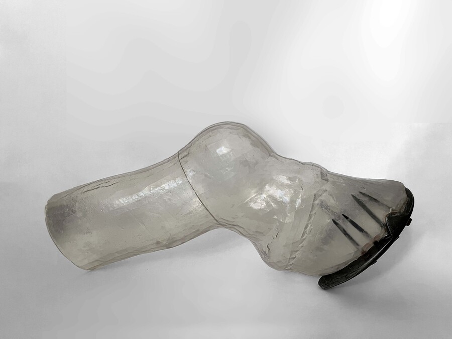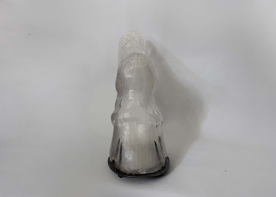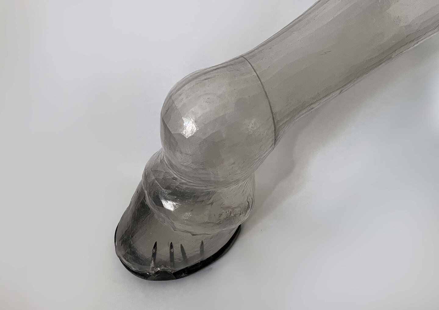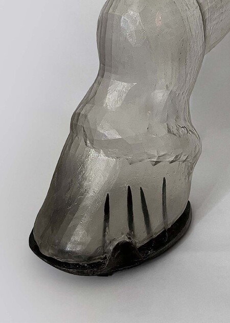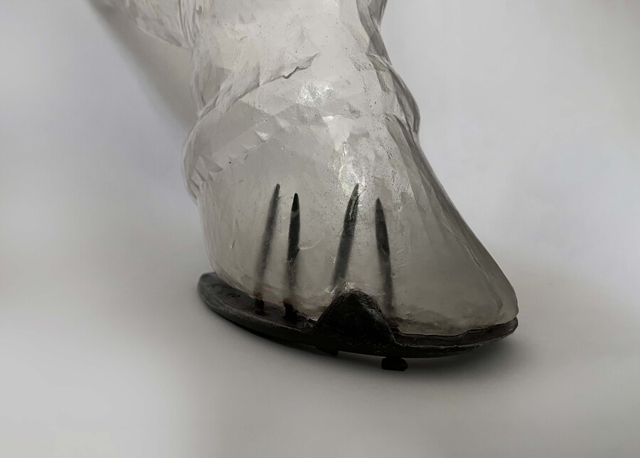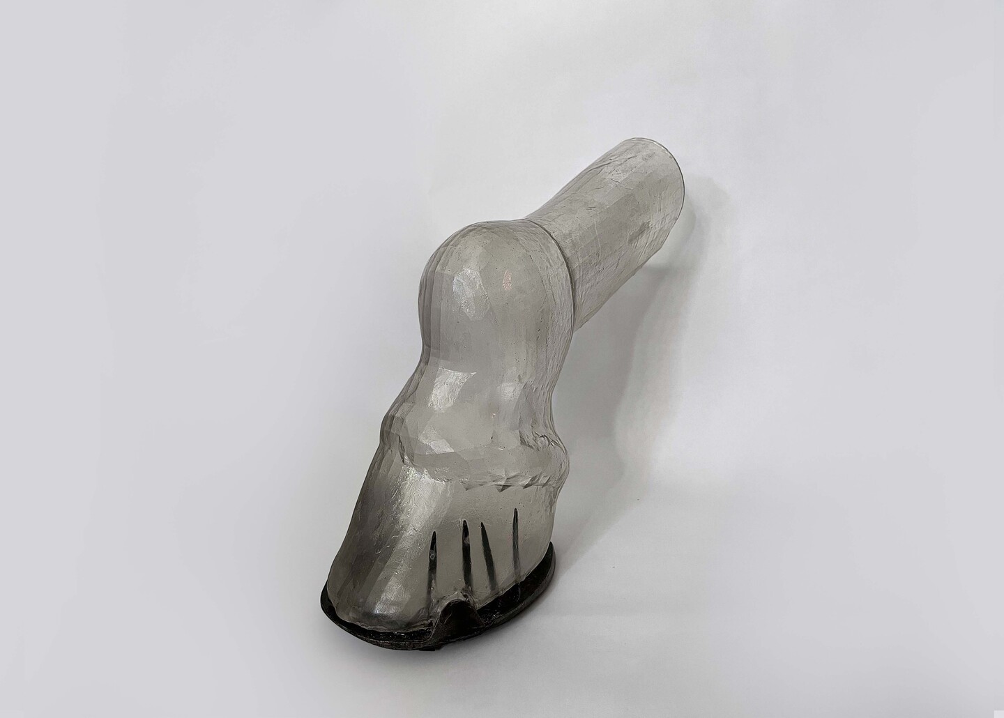 Во фрагмент конской ноги, напечатанной на 3D-принтере, грубо вбита настоящая металлическая подкова как знак вмешательства и присвоения. Сложное взаимодействие материалов —полупрозрачного и металлического показывает диссонанс отношений между природой и человеком. Кульминационным моментом выступает соединение подковы с телом скульптуры — внедрение болезненно видно насквозь, что показывает степень вмешательства.