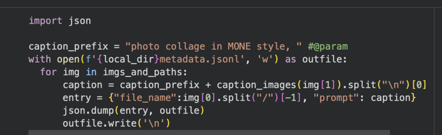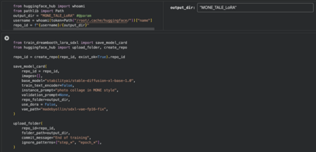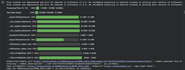 Далее, я… …создала подписи к работам Моне; …создала JSON файла с префиксами; …сделала подготовку и сделала вход на Hugging Face.