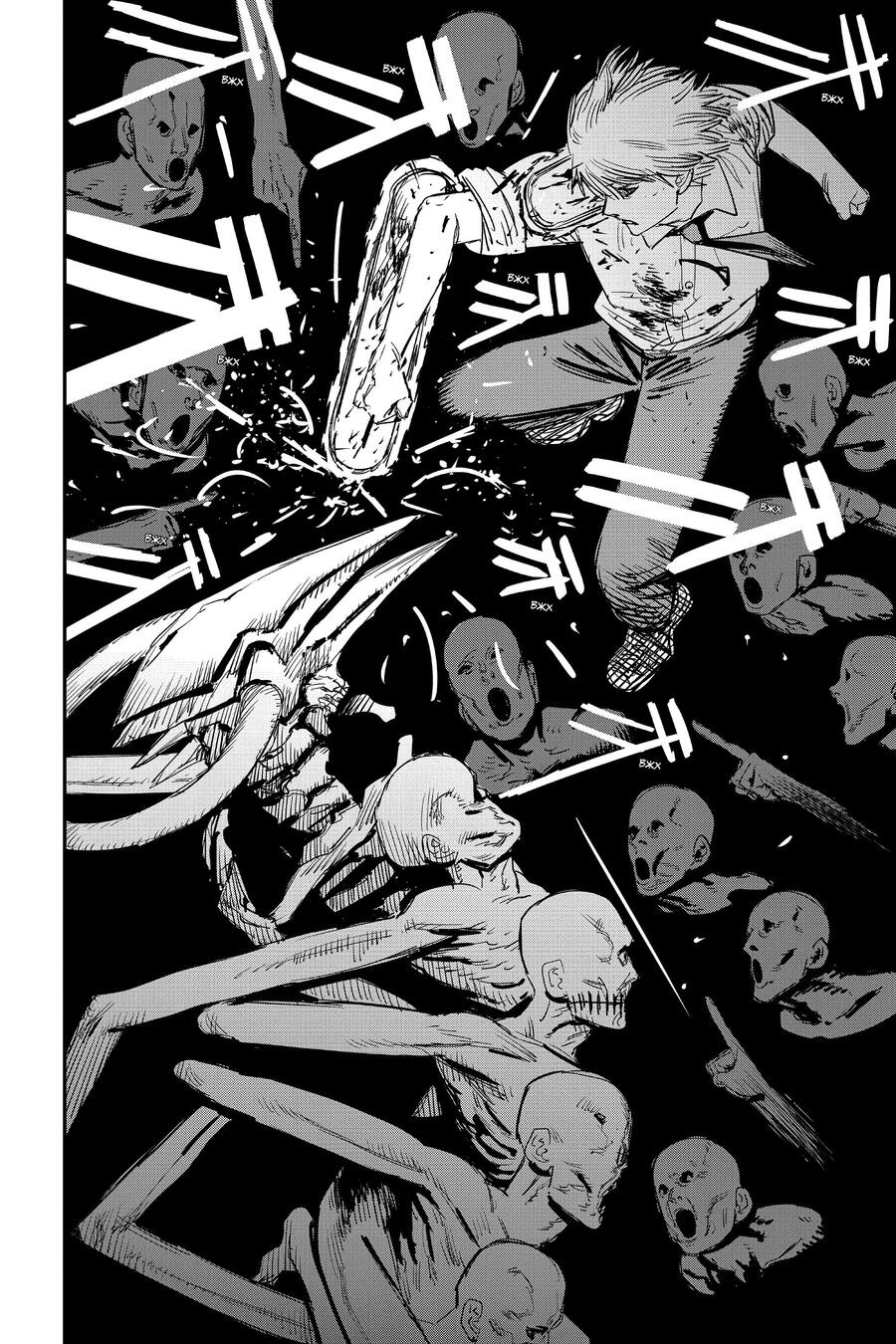 В неописуемом образе демона сочетаются экзистенциальное и материальное, а концепция недосягаемого, но вечно присутствующего врага пугает безвыходностью. И все же для демона Бензопилы нет преград, когда речь заходит о боли. В случае демона Вечности страдания тоже могут быть вечными.