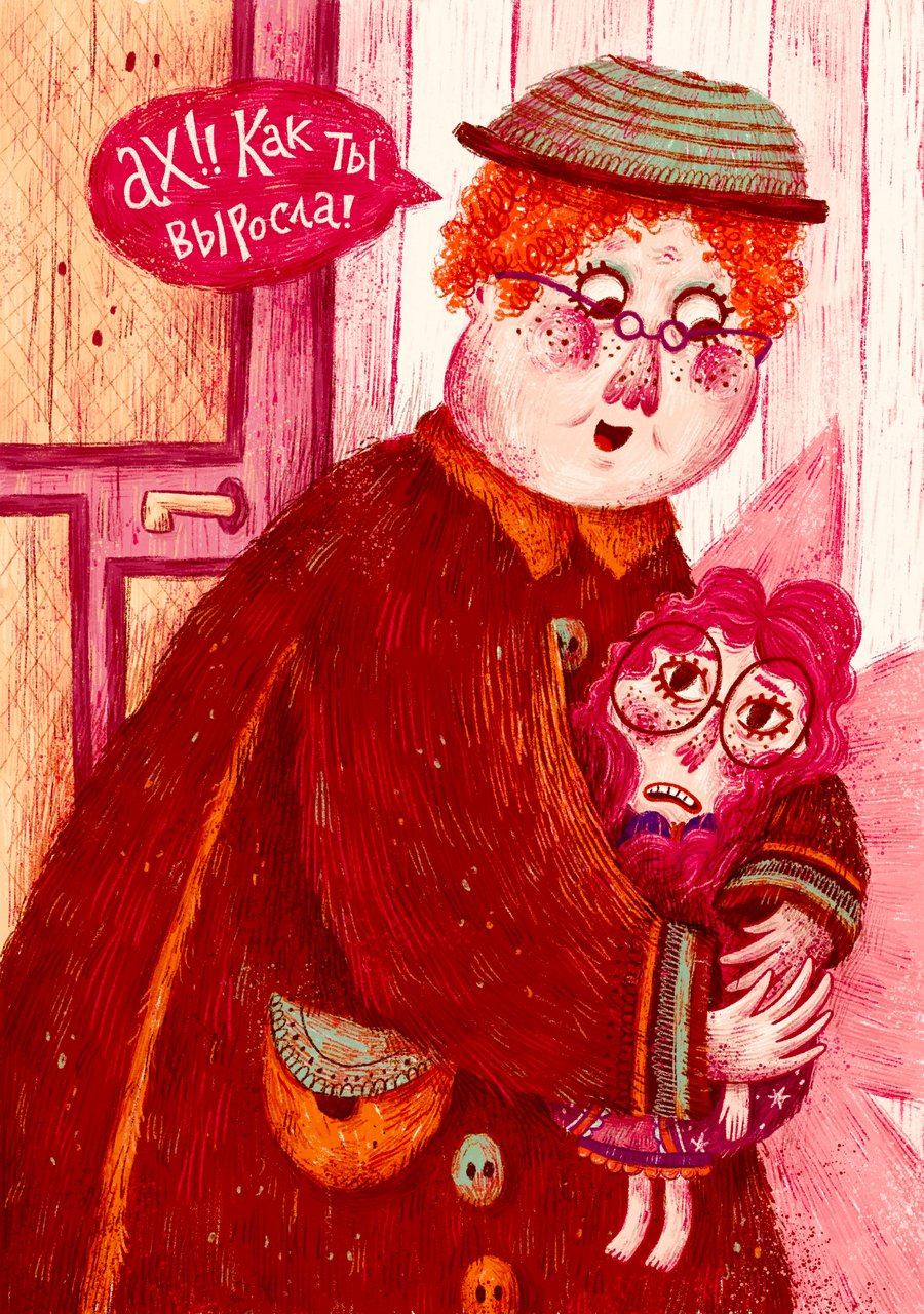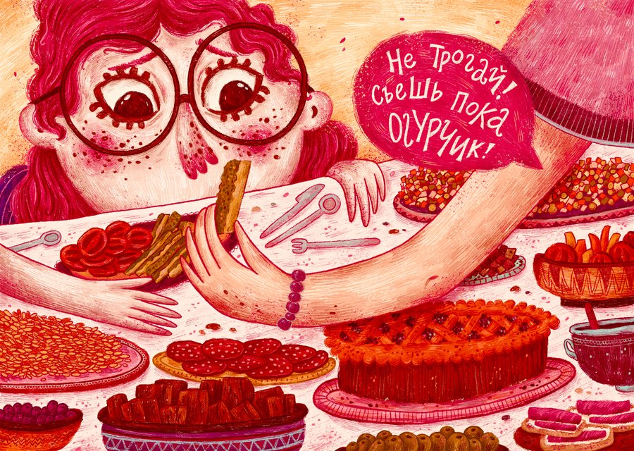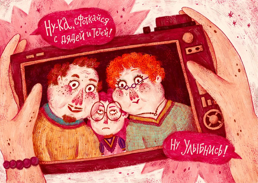 КОНЦЕПЦИЯ ЗИНА: Зин с серией однокадровых комиксов посвящена трудностям, с которыми из-за разных желаний взрослых сталкивается ребенок в день семейного праздника и прихода гостей.