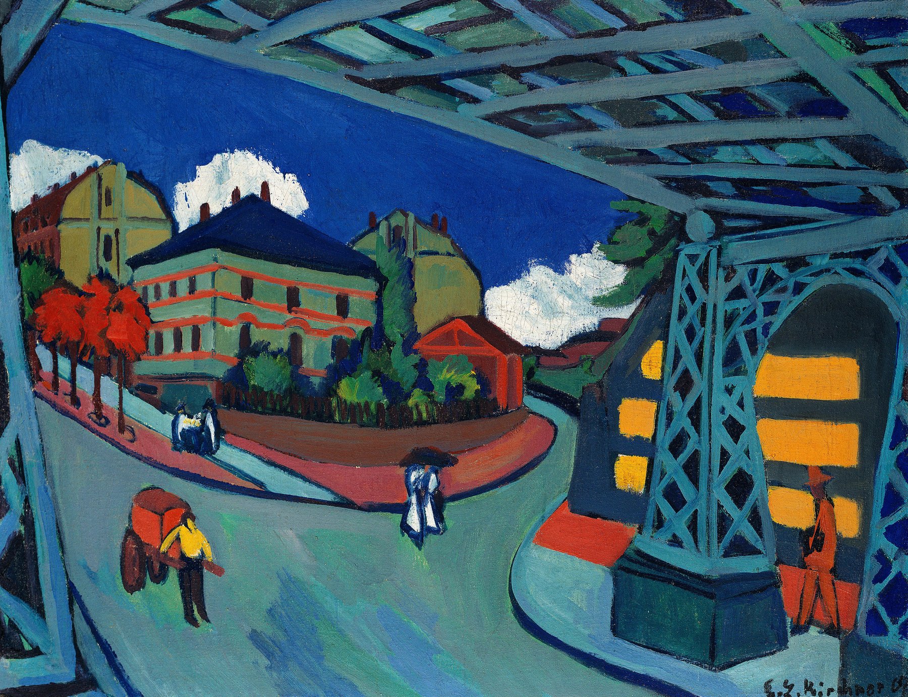 «Железнодорожный мост на Лёбтауэр Штрассе в Дрездене» — выдающаяся работа немецкого художника Эрнста Людвига Кирхнера, одного из основателей ключевой художественной группы экспрессионистского движения «Die Brücke» («Мост»). Этот городской пейзаж, созданный между 1910 и 1926 годами, отражает динамику и энергию городской жизни. Художник мастерски воплощает атмосферу города через смелые, контрастные цвета, придающие работе особую эмоциональную выразительность, а также динамичные, экспрессивные линии и густые плотные мазки.