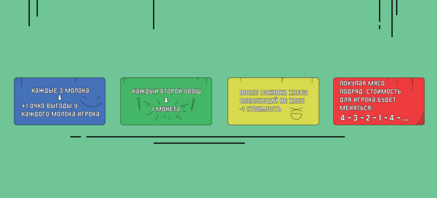 Соревновательная настольная игра на 2-4 человек, в которой игроки охотятся за скидками и выгодными предложениями!