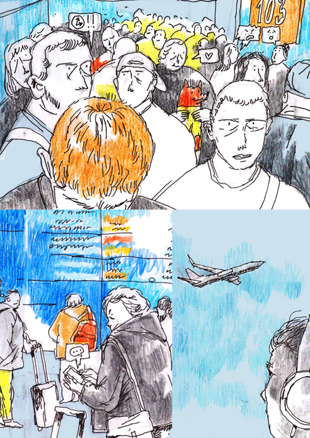В аэропорте бушует жизнь: где-то мы видим бесконечные толпы, а где-то нас охватывает неожиданно широкое пространство с огромными потолками, куда кто-то случайно забрел. Здесь кто-то торопится, а кто-то спокойно ждет рейс.