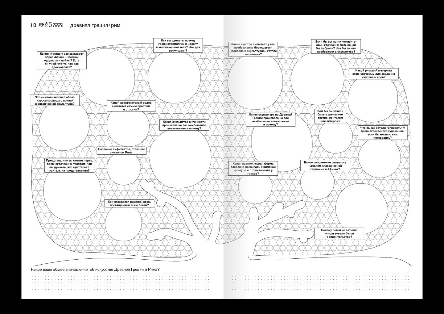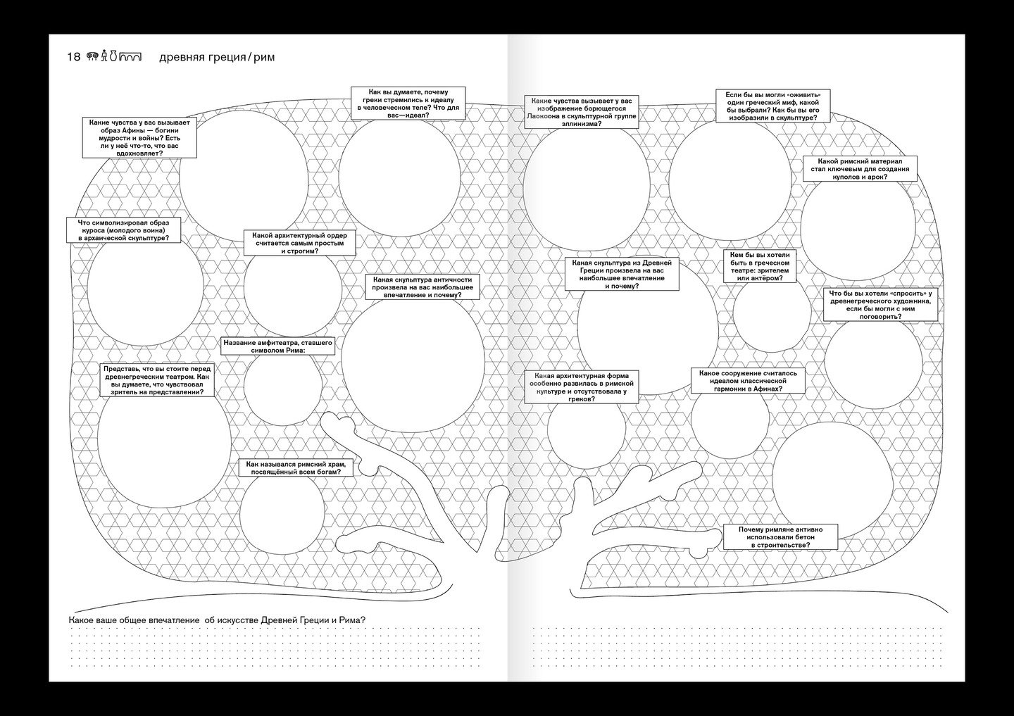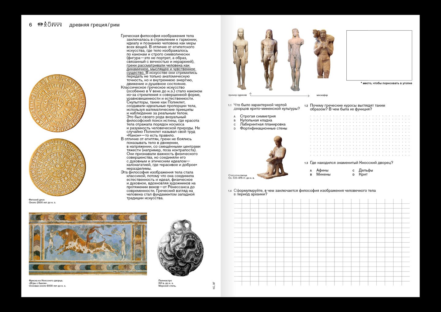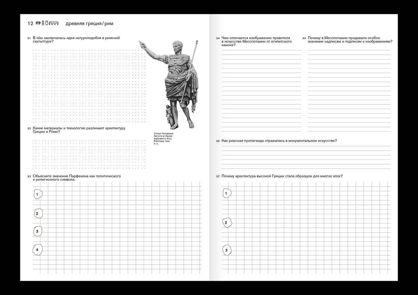 рабочая тетрадь содержит: - таймлайн указанного периода - список терминов по теме - задания с выбором ответа - задания на сопоставления - обобщенную подборку предметов искусства - вопросы открытого типа - вопросы открытого типа для анализа произведений и рефлексии