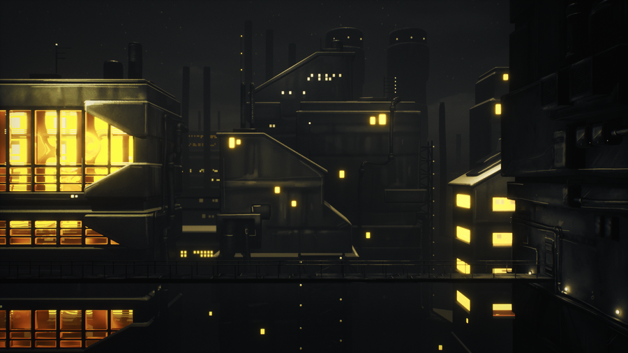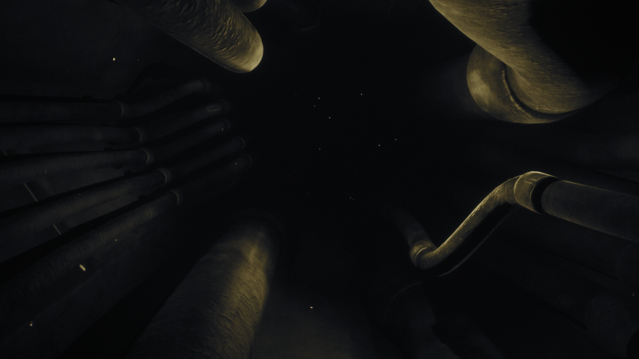 The factory premises, winding corridors and humming workshops gradually take on a metamorphosis as the protagonist surrenders to disintegration. Intertwining pipes fall into the void, hallucinations become the new reality.