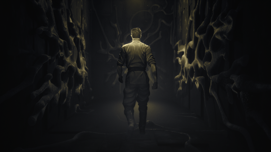 The alien influence that consumes the soldier’s thoughts is visually reflected both in abstract visions and on the man’s body.