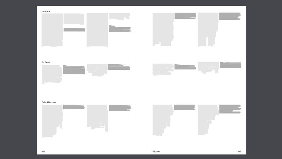 Исследование посвящено анализу визуальных и структурных особенностей современных учебников английского языка (после 2019) для поколения Альфа. Цель исследования — определить, за счет чего привлекается внимание детей, как формируется взаимодействие ребенка и пособия, и как преподносить текстовую информацию ребёнку, имеющего трудности с восприятием текста. Полученные данные помогут при поиске образов для фирменного стиля лингвистического центра. Метод — каталогизирование исследуемых элементов из 12 учебников — Kid’s Box 1-4, Go Getter 1-4, Oxford Discover 1-4